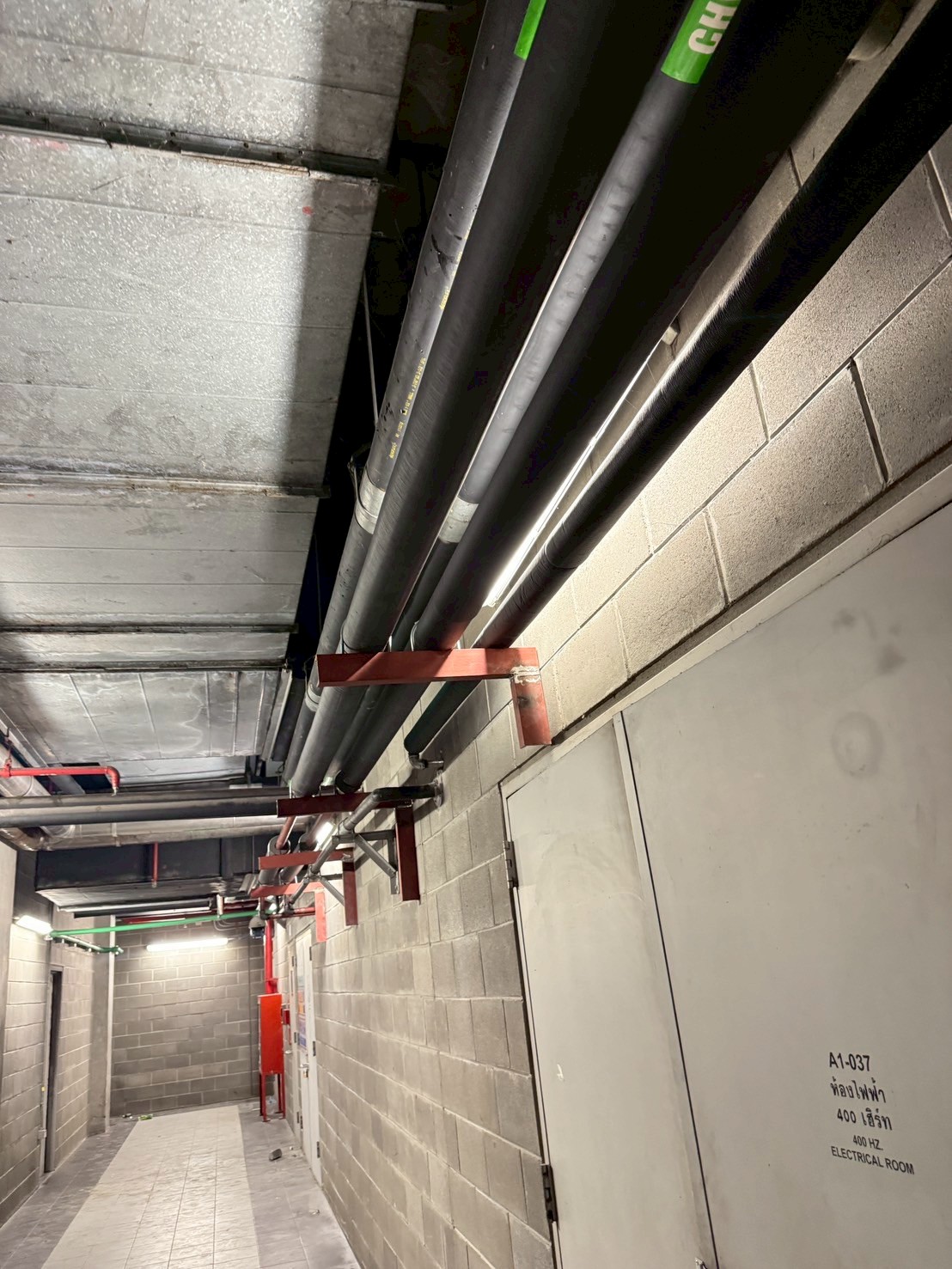 Calculate the supply of chilled air from the water chiller system to maintain a constant temperature in order to preserve the quality of parts and liquids, as well as the essential electrical and network systems in the airport.